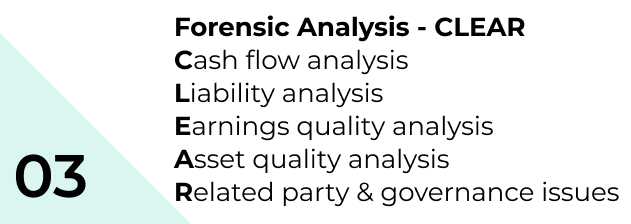 Our CLEAR framework is designed to deep dive/analyze the annual reports, financials, and numerous public documents of companies, which help improve our vision beyond the reported numbers that helps us reduce the probability of Type A risk in the portfolio.